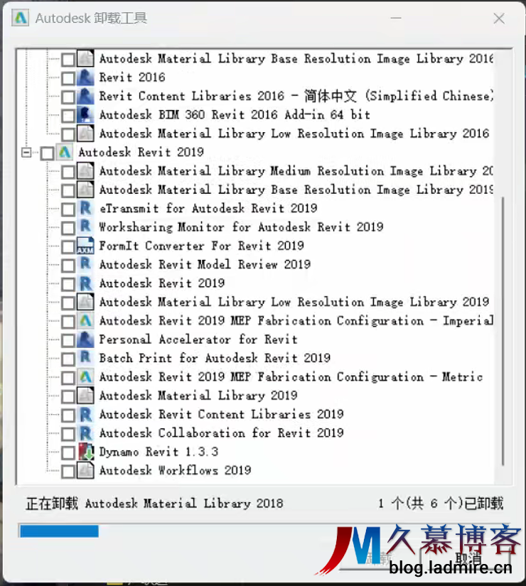 勾选你想要彻底删除的版本(如 Autodesk Revit 2019)。