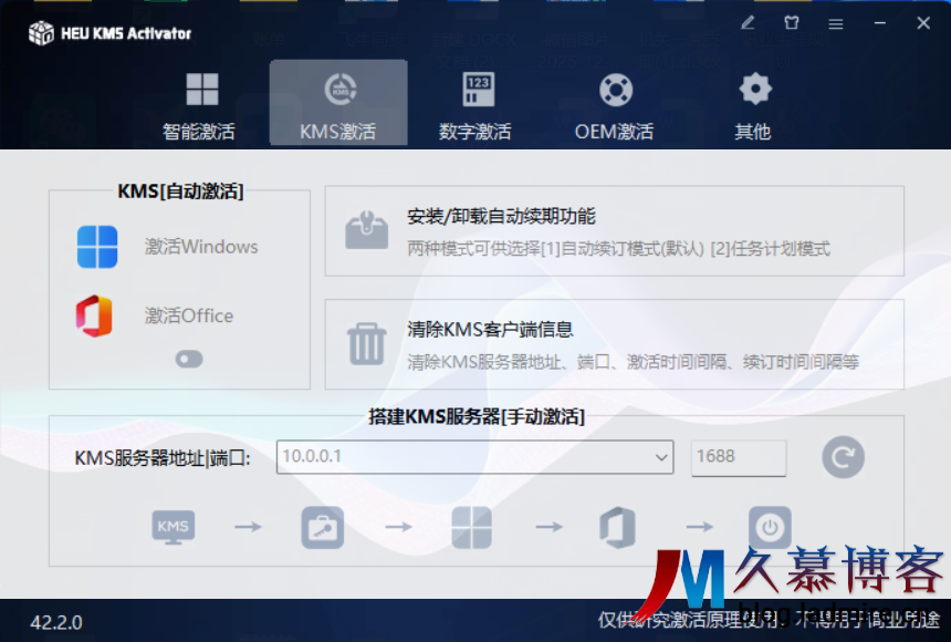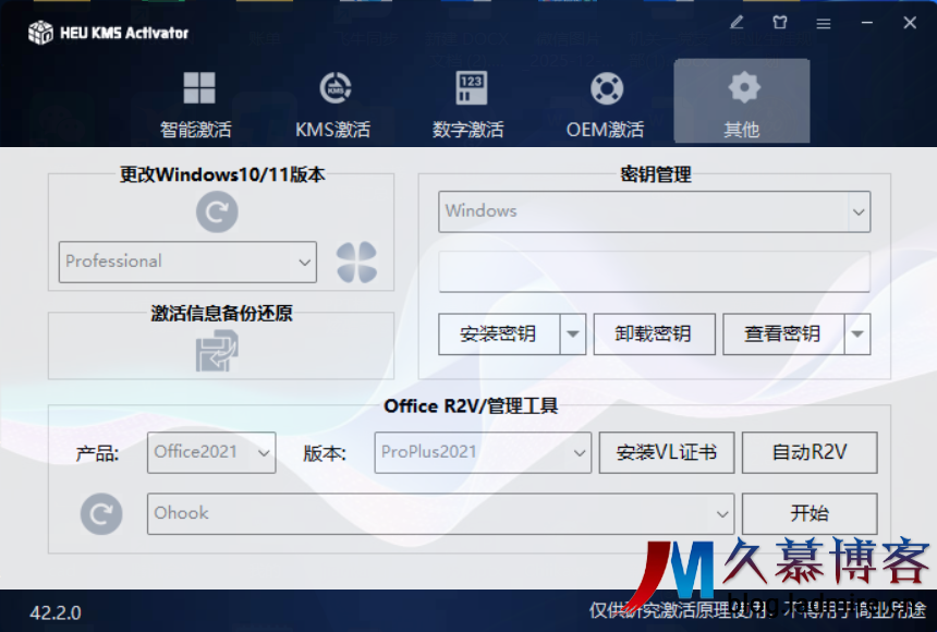 根据软件最新的界面显示,HEU KMS Activator 提供了五大核心模块,满足不同场景下的激活需求:
