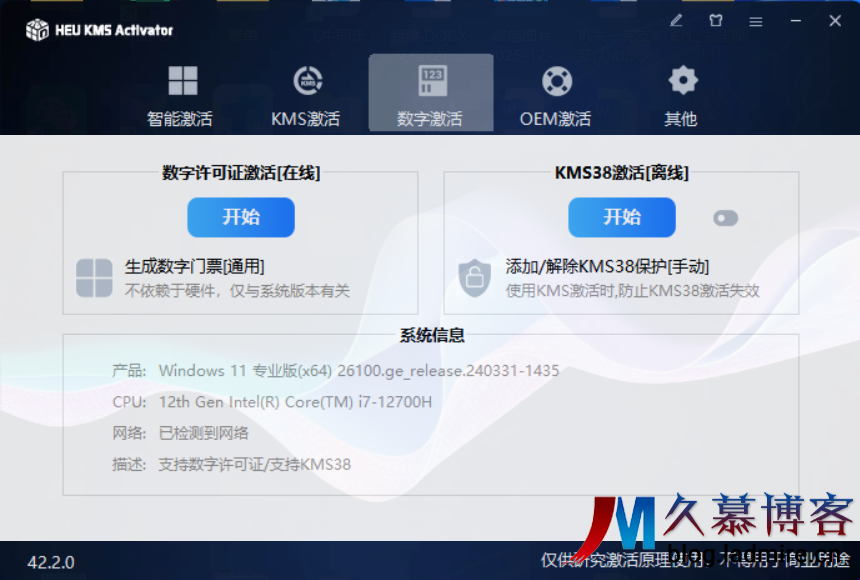 数字许可证激活: 针对 Windows 10/11 系统,可实现永久激活,即使重装系统,只要硬件不换,联网后即可自动激活。