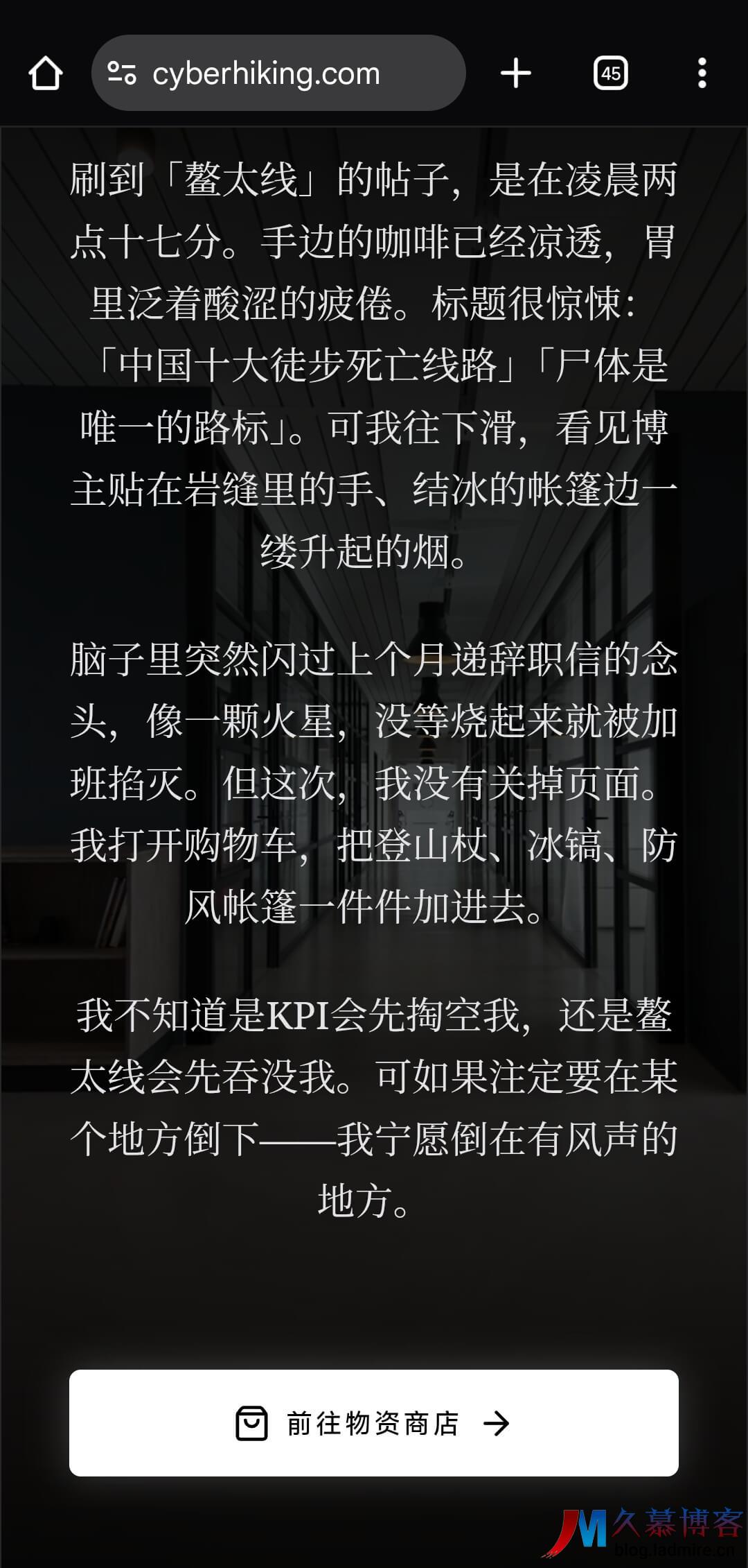 最近,一个名为 Cyber Hiking(赛博徒步) 的网页游戏在户外圈和打工人圈子里悄然走红。它不仅仅是一个模拟器,更像是一场关于生命、欲望与敬畏的深度心理实验。正如玩家所言:“我不知道是 KPI 会先掏空我,还是鳌太线会先吞噬我。可如果注定要在某个地方倒下,我宁愿倒在有风声的地方。”