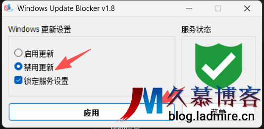 关键点: 勾选下方的 “锁定服务设置”。这一步非常关键,它能防止 Windows 自动后台修复并重新开启更新服务。