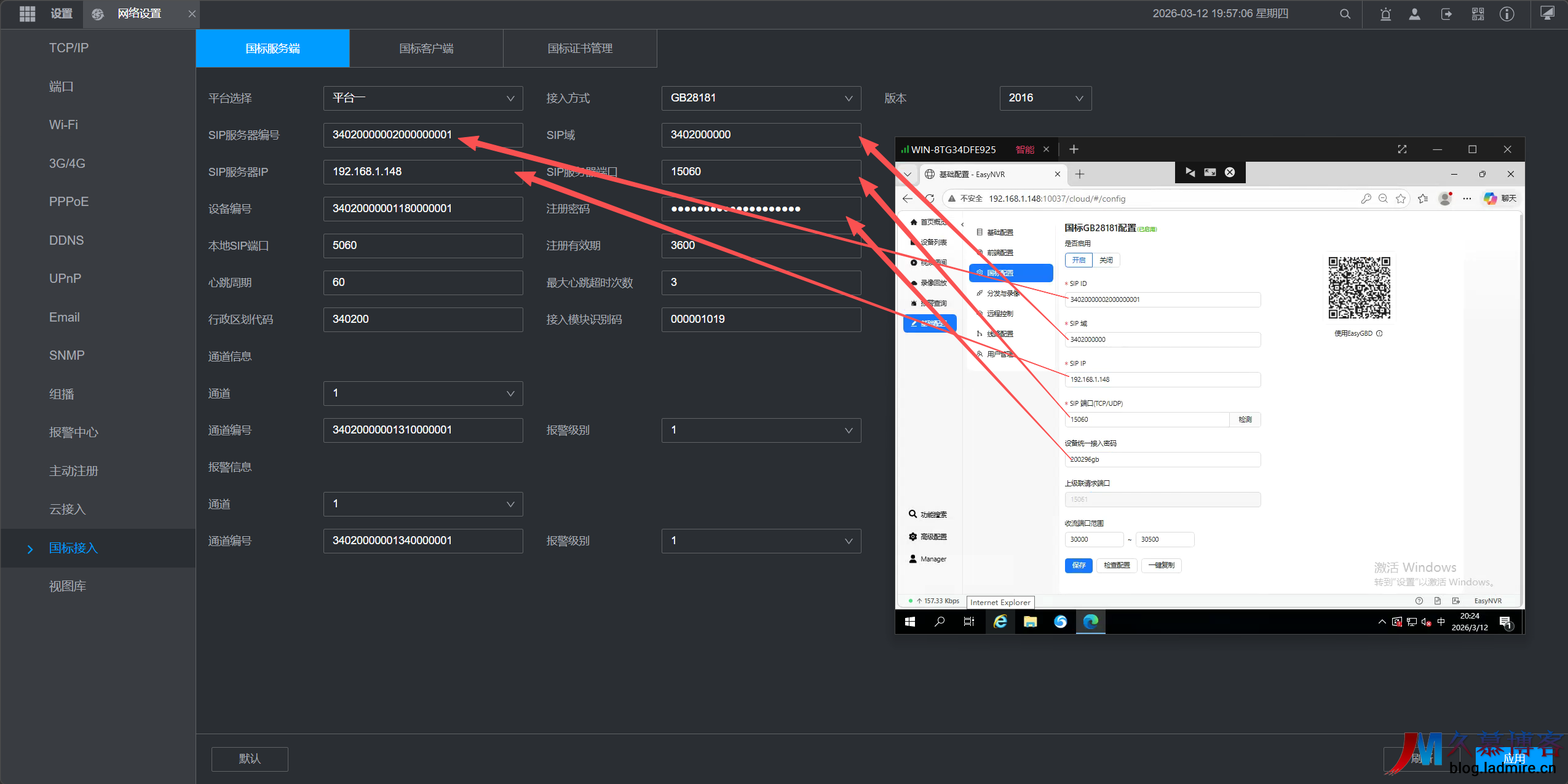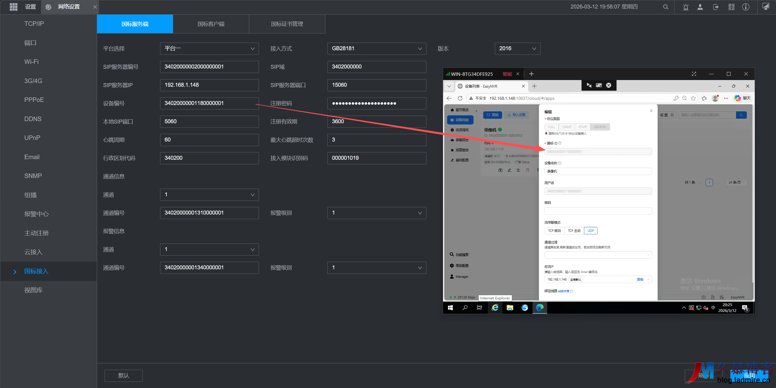 首先,我们需要在大华 NVR 的网络设置中开启国标接入功能,并填写 EasyNVR 平台提供的 SIP 信息。这一步是实现设备与平台“握手”的关键。